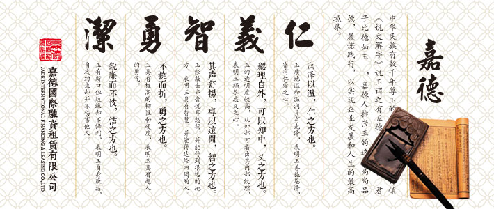 嘉德國際融資租賃有限公司于2013年6月18日成立于天津,是經國家商務部批準成立的中外合資融資租賃有限公司,其業務受理范圍是面向全國的融資租賃業務,前期注冊資本2億元人民幣。公司股東分別是大連金祥嘉熙投資有限公司,赤峰金峰銅業有限公司及Ginger Capital Investment Holding Limited公司。嘉德國際融資租賃有限公司整合股東在產業、資源和運營管理等方面的優勢,實現強強聯合與優勢互補,以國際化的視野、專業化的品質和市場化的機制,為客戶提供富有競爭力和行業附加值的融資租賃產品和服務,努力打造國內一流、世界領先的現代租賃企業。