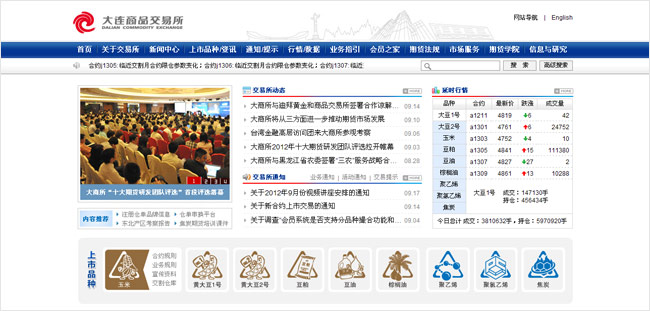 大連商品交易所是經國務院批準并由中國證監會監督管理的四家期貨交易所之一,也是中國東北地區唯一一家期貨交易所。經中國證監會批準,目前上市交易的有玉米、黃大豆1號、黃大豆2號、豆粕、豆油、棕櫚油、線型低密度聚乙烯、聚氯乙烯和焦炭等期貨品種。大商所于1993年2月28日成立以來,規范運營、穩步發展,已經成為我國重要的期貨交易中心。